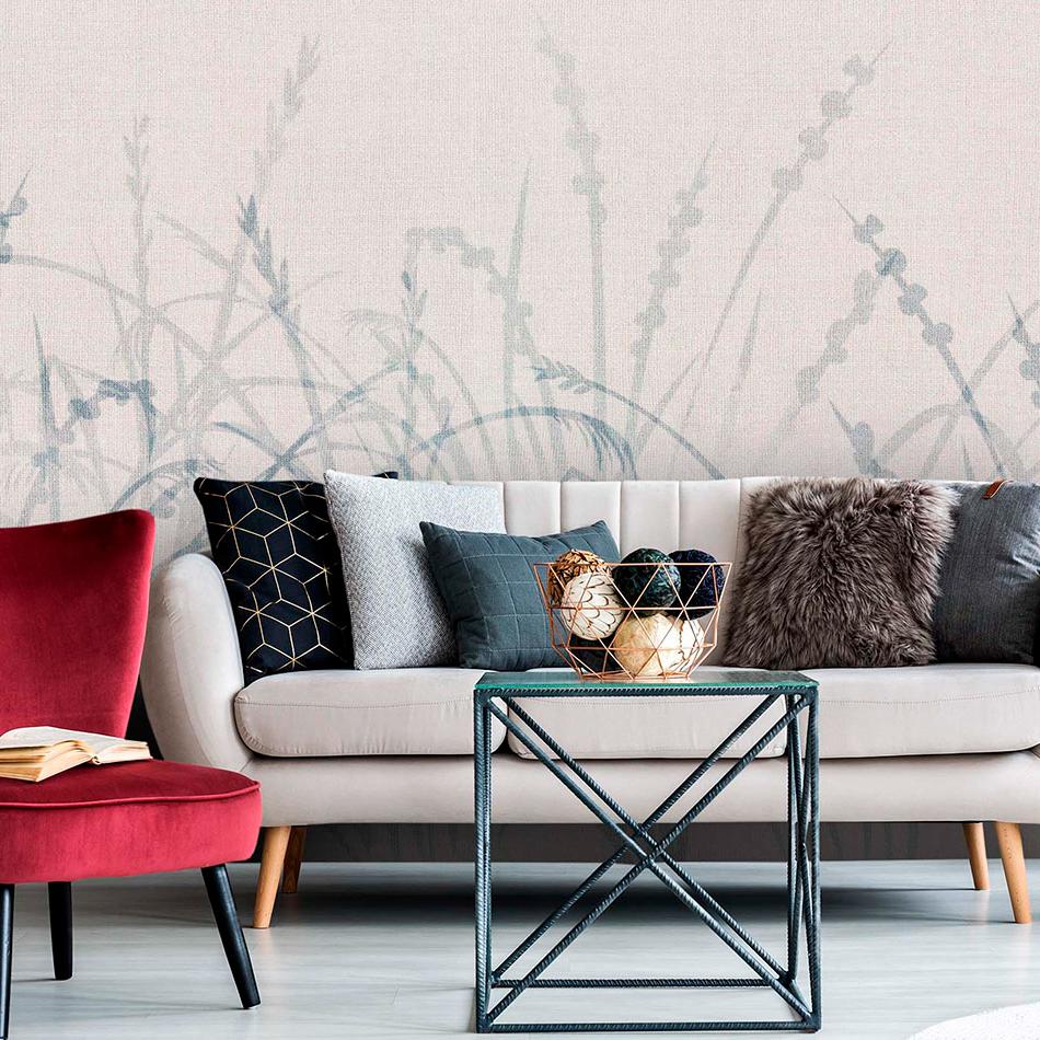 Лёгкая и воздушная фреска с изображением степных трав и колосьев, вдохновлённая природой казахских просторов. Полупрозрачные силуэты растений создают атмосферу спокойствия и уюта, наполняя интерьер лёгкостью и гармонией.