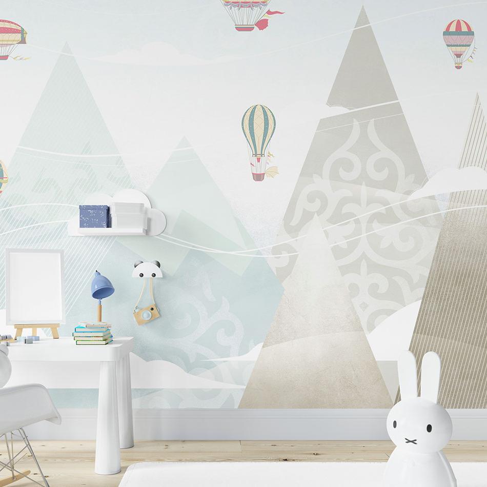 Лёгкая и воздушная композиция с величественными горами и парящими в небе воздушными шарами. Тёплые бежево-пастельные оттенки создают атмосферу уюта и спокойствия, а стилизованные казахские орнаменты вносят национальный колорит. Такой дизайн станет ярким акцентом в гостиной, детской или офисе, придавая пространству ощущение свободы и вдохновения.