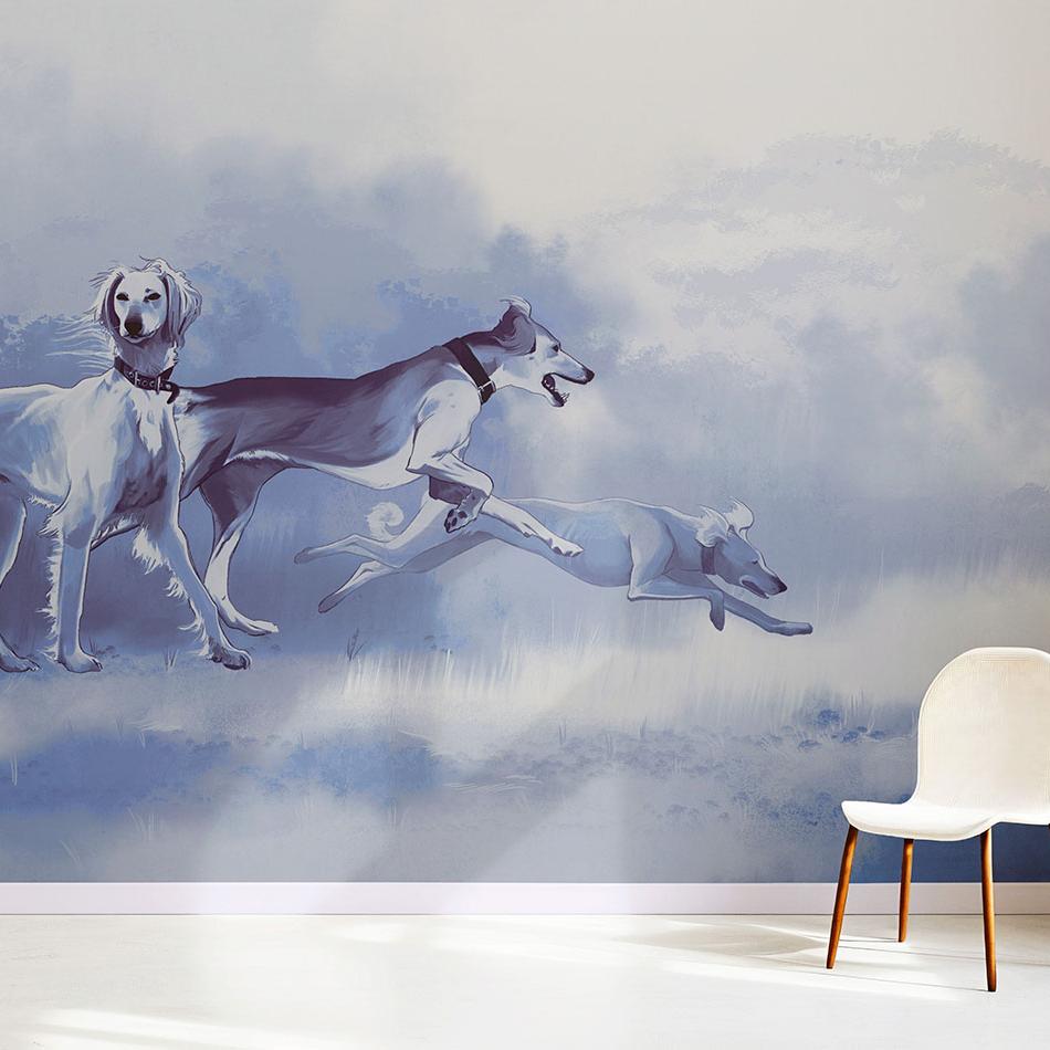 Авторская фреска изображает трёх тазы — традиционных казахских охотничьих борзых, известных своей скоростью, выносливостью и элегантным силуэтом. Мягкая палитра, плавные линии и проработанные детали передают лёгкость движения и энергетику степи. Дизайн подойдёт для интерьеров в этническом, современном или эко-стиле, добавляя пространству глубину и характер. Идеально для оформления гостиных, спален, кабинетов, ресторанов, отелей и креативных пространств.