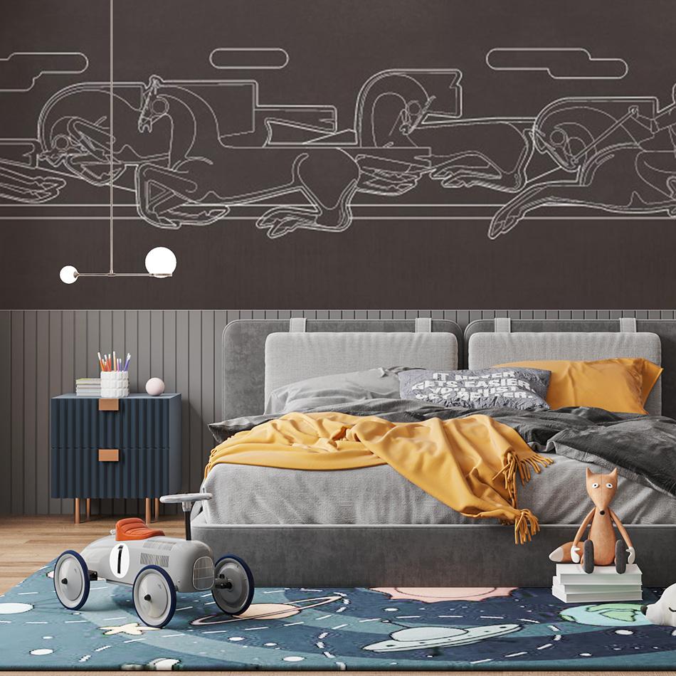 Сила, скорость, ловкость — всё это собрано в динамичной композиции, вдохновлённой традиционной казахской игрой "Құрық салу". Фигуры скакунов создают ощущение движения и преемственности поколений. Минималистичная палитра и выразительная графика делают композицию современным акцентом для интерьера. Обои подойдут для подростковой спальни, холла или арт-пространства, где ценят культурную идентичность и национальную эстетику.