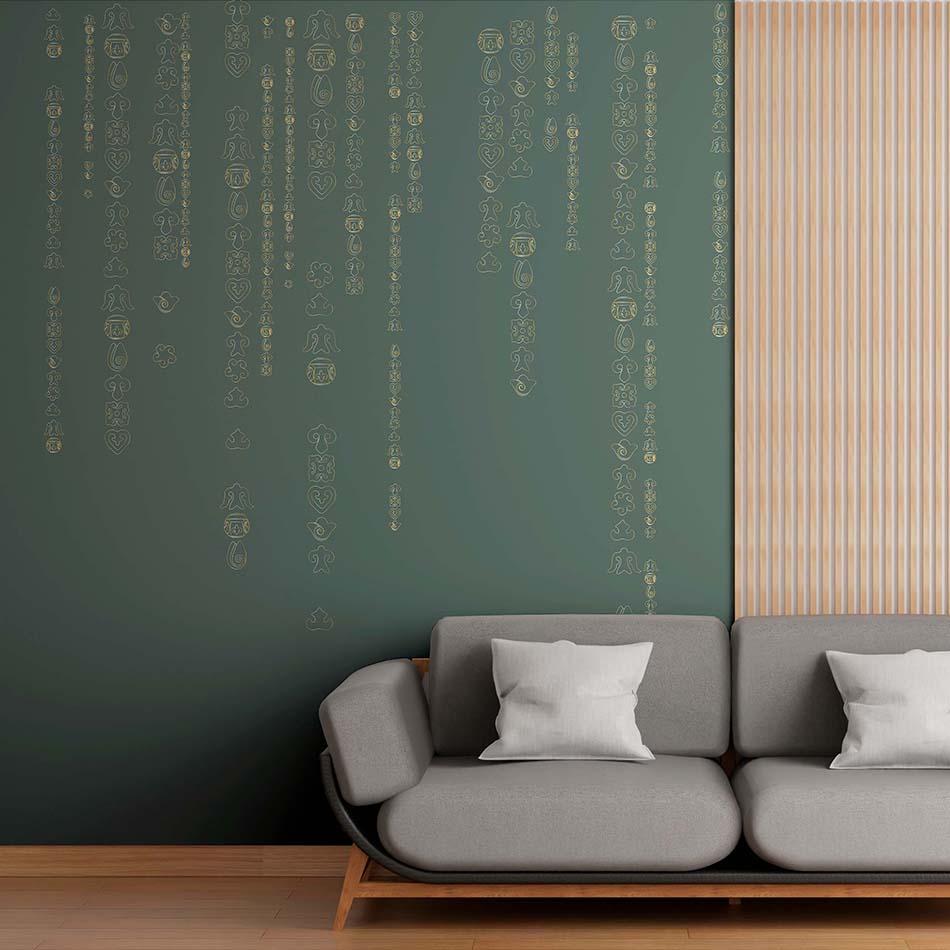 Современная фреска с казахскими национальными мотивами. Вертикальные нити орнаментов создают ощущение легкости, динамики и простора, подчёркивая этнический характер интерьера. Подходит для современных и классических пространств, а также интерьеров в этно-стиле. Идеальна для гостиной, спальни, кабинета, ресторана, зоны отдыха и пространств с этническим акцентом.