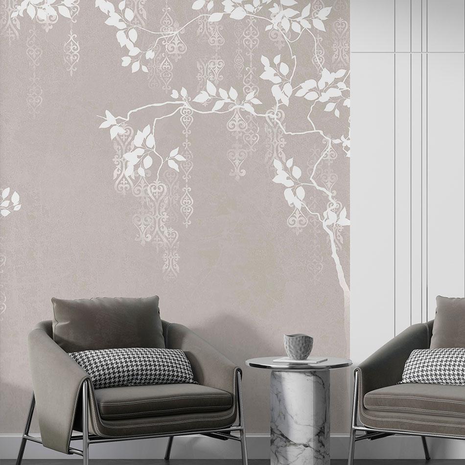 Элегантная фреска с ветвями дерева, украшенными листьями. Орнаменты на фоне создают ощущение легкости и воздушности, придавая интерьеру утонченный характер. Такая композиция оживит пространство и подчеркнет стиль. Сочетает природные и этнические мотивы. Бесшовное полотно без стыков и швов. Универсальный дизайн, подходящий для разных стилей, высокая детализация и стойкие краски. Идеально для оформления гостиной, спальни, кабинета или зоны отдыха. Также гармонично смотрится в ресторанах, кафе, отелях и студиях, подчеркивая индивидуальность интерьера.